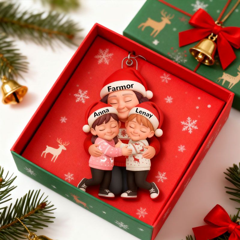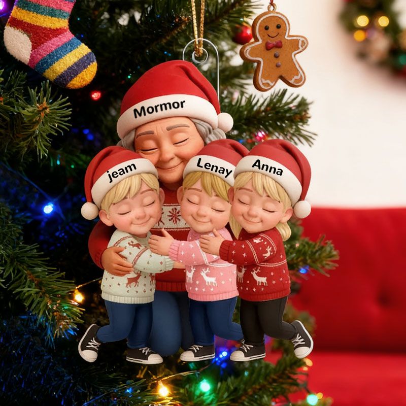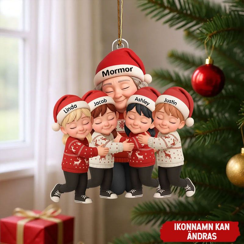 Mormor kramar barnbarn - Personlig akrylprydnad - Hjärtevärmande julklapp till mormor, barnbarn