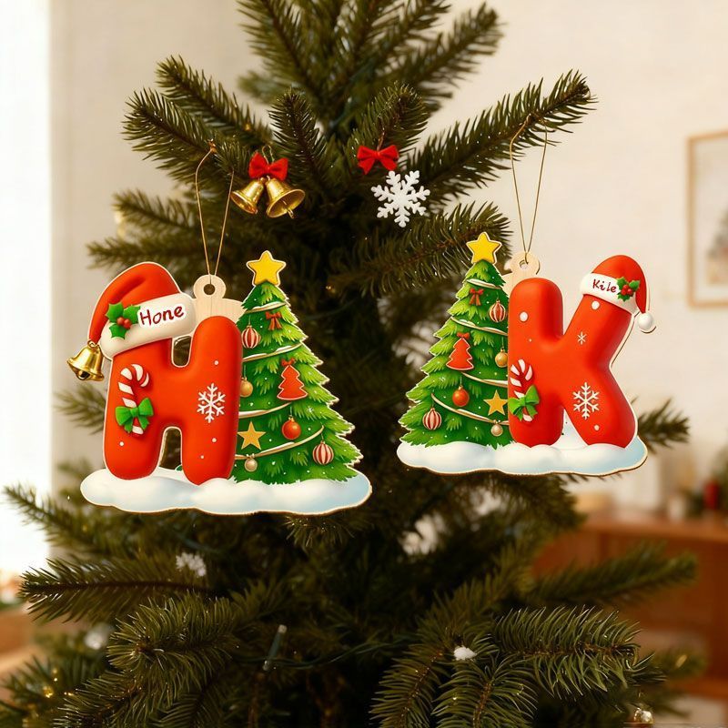 Personlig julgransprydnad och bokstavsprydnad | Anpassad juldekoration med namn och A-Ö